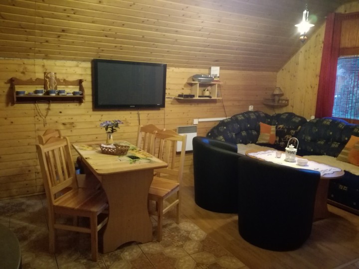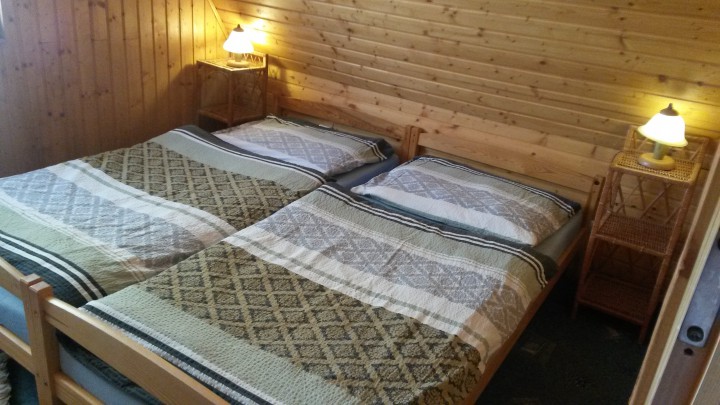 Vo druhej chate sa pohodlne ubytuje 8 hostí v jednej dvojlôžkovej a dvoch trojlôžkových izbách. Na prízemí chaty je hosťom k dispozícii spoločenská miestnosť s krbovou pecou, vybavenou kuchyňou - umývačka riadu, mikrovlnná rúra, rýchlovarná kanvica, plyvový varič, televízorom, satelitom a WiFi pripojením na internet. Samozrejmosťou chaty je kúpeľňa so sprchovacím kútom a toaletou.