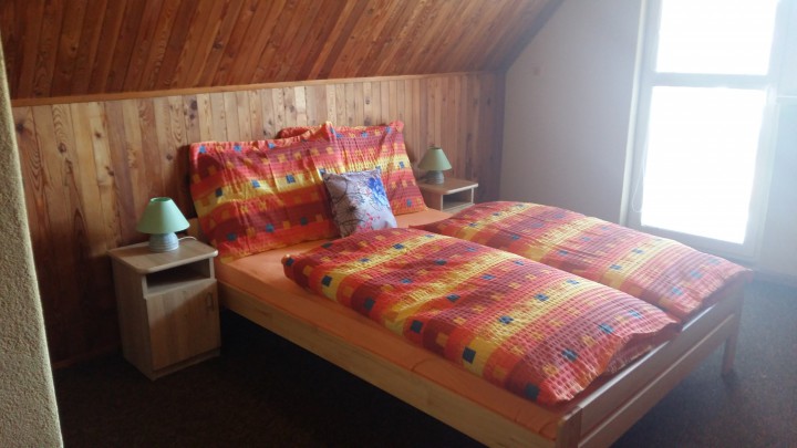 Celoročne Vám ponúkame príjemné ubytovanie v štýlovej chate, ktorá je kapacitne prispôsobená pre pohodlné ubytovanie 6 až 9 osôb. V chate sú Vám k dispozícii tri spálne, na poschodí štvorlôžková, trojlôžková, a na prízemí dvojlôžková izba. Na prízemí chaty je pre Vás pripravená príjemná spoločenská miestnosť s krbom, televízorom, rádiom s CD prehrávačom a WIFI internetom. Na prípravu domácej stravy Vám tu poslúži kuchyňa s jedálenským posedením, sporákom ,rýchlovarnou kanvicou, chladničkou s mrazničkou, mikrovlnnou rúrou a umývačkou riadu. Samozrejmosťou chaty je kúpeľňa so sprchovacím kútom a toaletou.